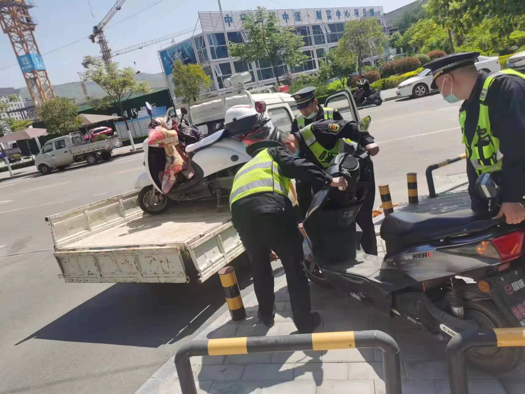 新天水讯 又一个“五一”劳动节到了,秦州区综合执法局七里墩中队的成员们放弃了小长假的休息,整理着装,走上街头。继续以优质扎实的工作作风开展工作,挪移非机动车、铲除乱张贴小广告、清理占道经营流动摊贩、制止临街商铺店外经营、劝导机动车辆不占用人行道、盲道乱停车、拆除破损门头广告。