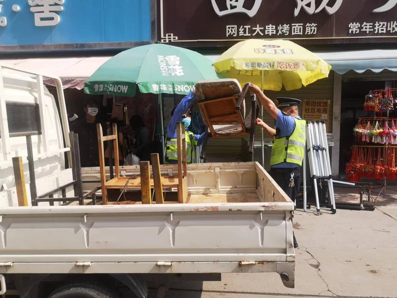 新天水讯 5月19日早上,秦州区执法局大城中队详细部署,精准发力,出动执法人员20人对龙城广场三台乱摆乱放的手推车、帐篷、桌子等物品进行集中清理。同时,执法人员对不听劝告,依然藐视法律法规的“钉子户”摊主进行批评教育,并依法暂扣其桌子5张,煤气罐1个。通过集中整治,使辖区龙城广场三台市容环境得到有效提升。