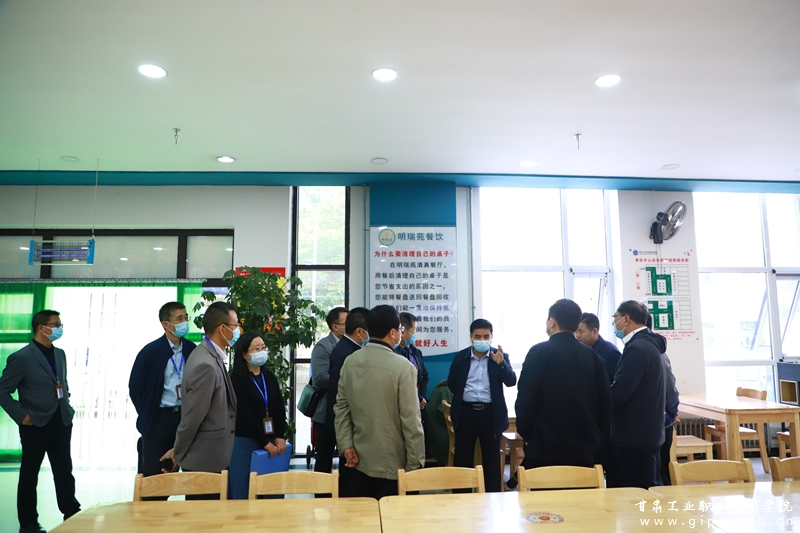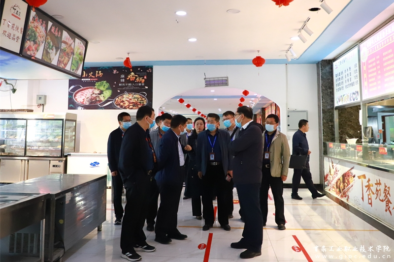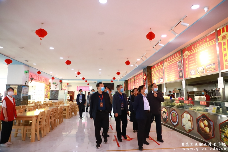 新天水讯 5月19日上午,省教育厅一级巡视员时宁国、发展规划处处长李连军、发展规划处副处长崔兴云一行莅临甘肃工业职业技术学院调研督查餐饮保障工作。校党委书记杨声,校党委副书记、院长安建平,相关部门负责人陪同督导检查。