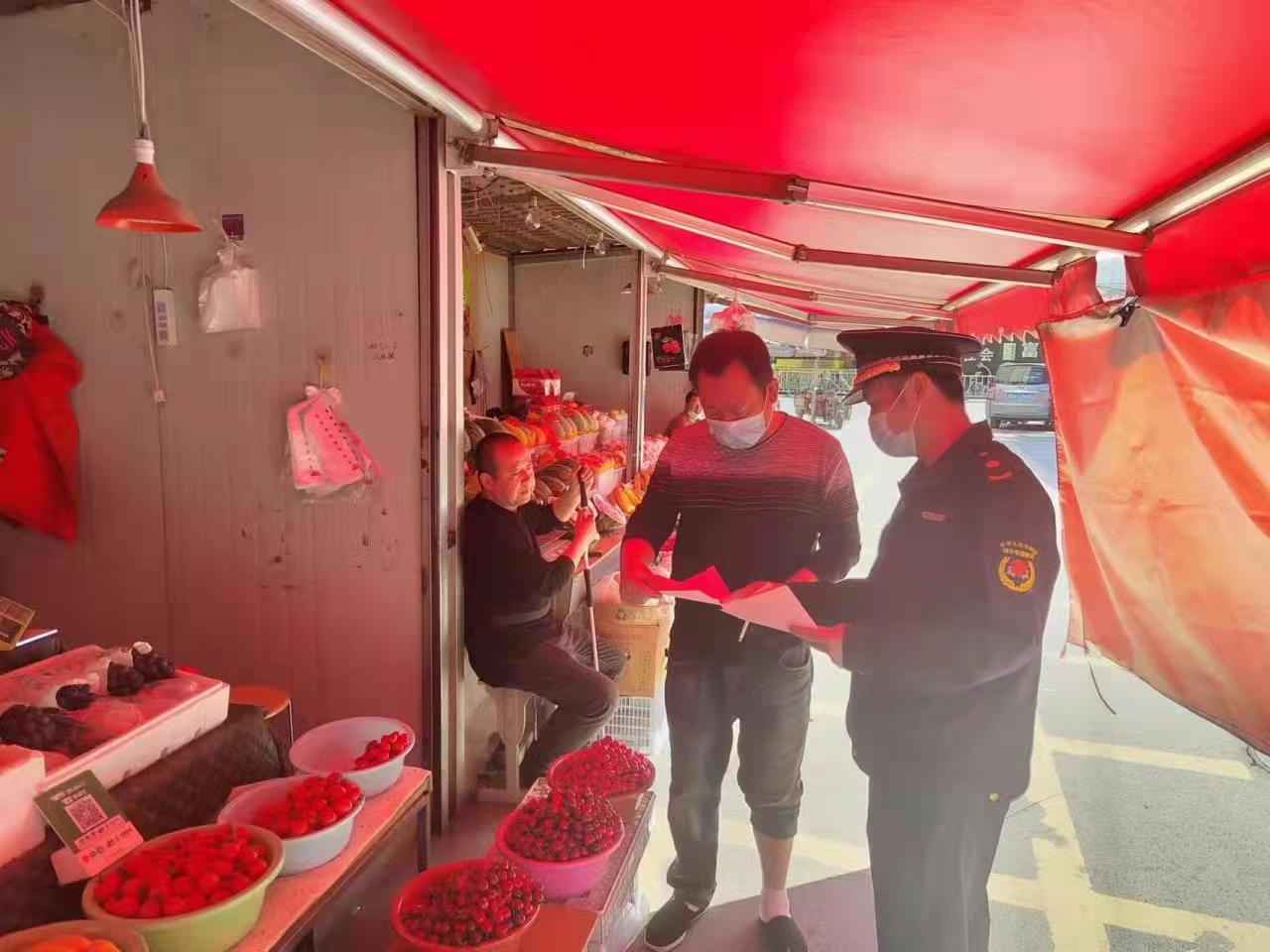 新天水讯 为进一步加强城市管理相关法治宣传教育力度,提高辖区群众知法、懂法、守法、用法水平,七里墩中队党支部按照局党组安排部署,结合中队实际工作情况,组织支部党员骨干在七里墩辖区几个市场开展了法律“八进”活动,向群众普及法律知识,引导市场经营户遵法守法,进店经营、保持门前干净整洁,进一步改善市场环境秩序,收到了良好效果。