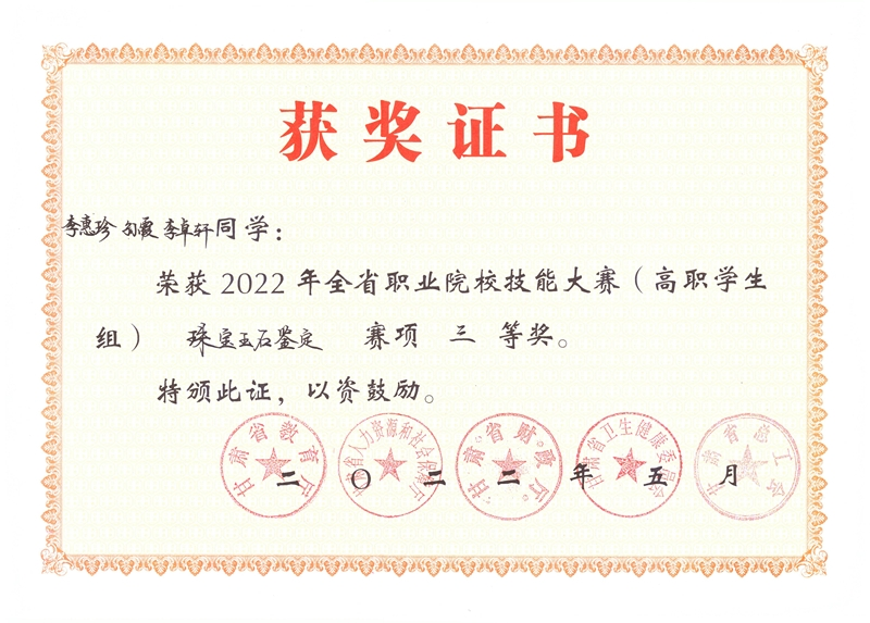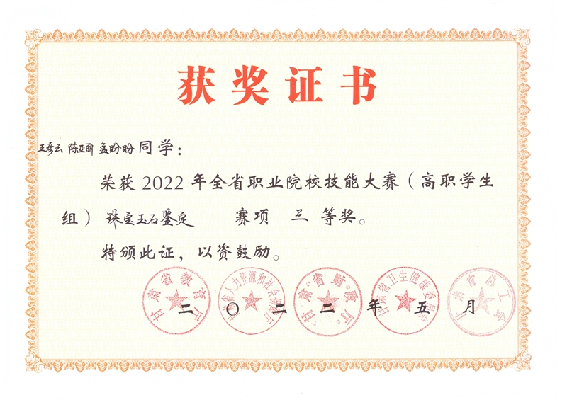 甘肃工业职业技术学院地质学院喜获2022年全省职业院校技能大赛高职组“珠宝玉石鉴定”赛项团体三等奖