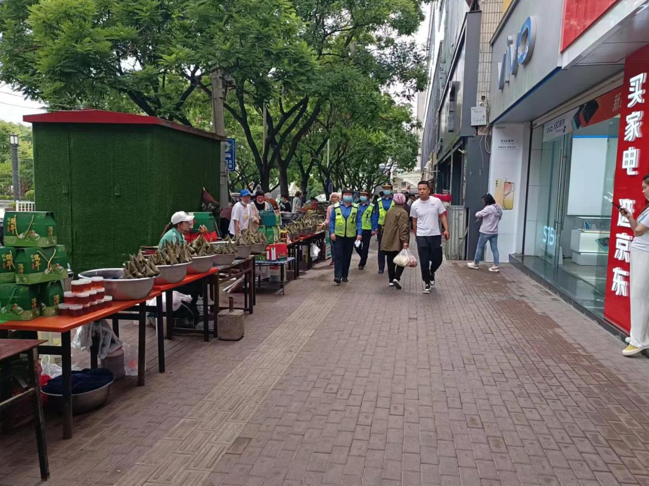 中队执法人员坚持一线,以“整洁有序、文明祥和”为目标,严格落实“网格化”管理,做到定人、定岗、定责,加大重点区域大众路、广场周边流动商贩占道经营、商铺店外经营、非机动车辆乱停乱放等行为的查处力度,发现一处,清理一处,及时纠正违章行为。同时,中队坚持疏堵结合的原则,因地制宜,规范临时节日“粽子一条街”,有效解决了商贩占道经营乱摆乱放的行为,既满足了广大市民节日需求,又不影响市容环境秩序,确保了端午节期间人行道畅通,市容环境干净整齐。