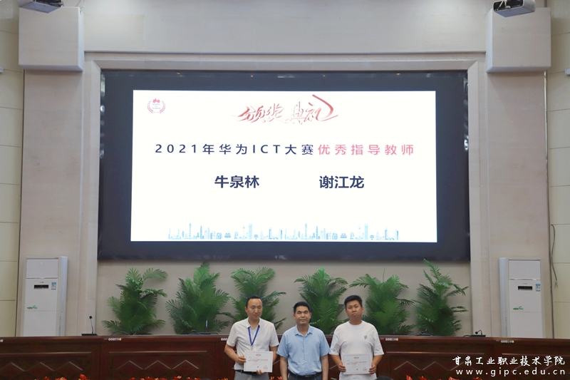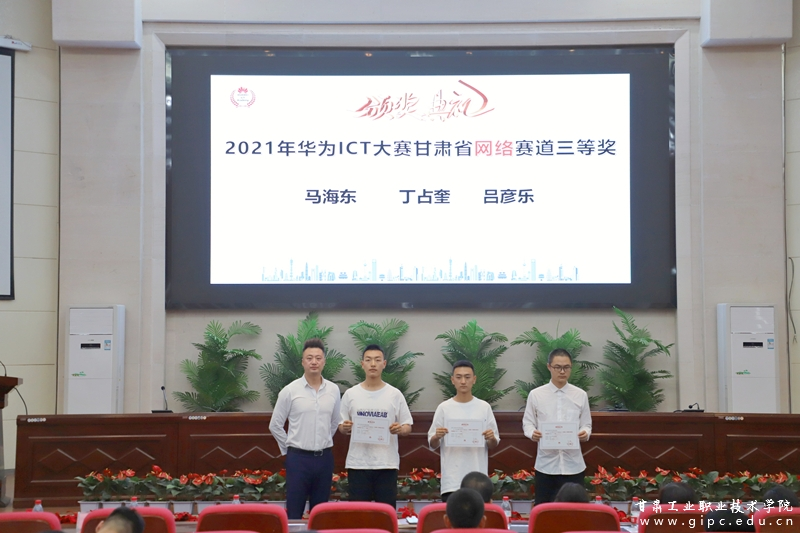 活动中,电信学院院长张燎致辞,华为甘肃代表处政企业务部人才生态经理赵剑为2021年华为ICT大赛甘肃省网络赛道获奖学生颁奖,张燎为获得2021年华为ICT大赛优秀指导教师颁奖。
