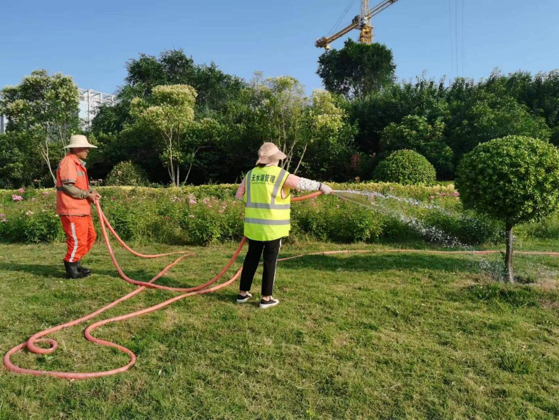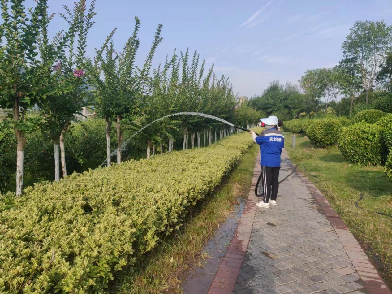 新天水讯 为应对持续高温天气,连日来,藉河风情线管理办组织人员及设备等物资,对景区12.6万平方米的绿化带开展昼夜分时段浇灌养护工作。