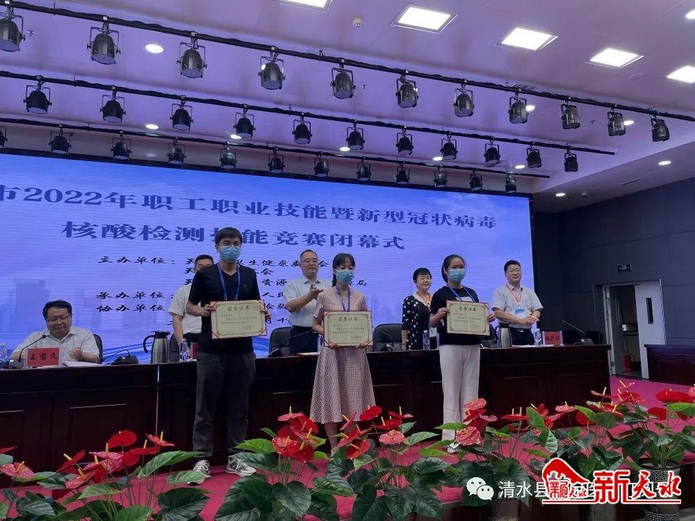 新天水讯 2022年8月12-14日天水市2022年职工职业技能暨新型冠状病毒核酸检测技能竞赛在天水市第一人民医院举行。来自我市五县二区17个医院的51名参赛选手参加了比赛,经过激烈比拼,清水县医院检验科核酸检测室李永强在大赛环节表现突出,荣获竞赛个人二等奖,团体第九名,在县级医院中居于前列,这是我院核酸检测队伍第一次参加该项目竞赛。