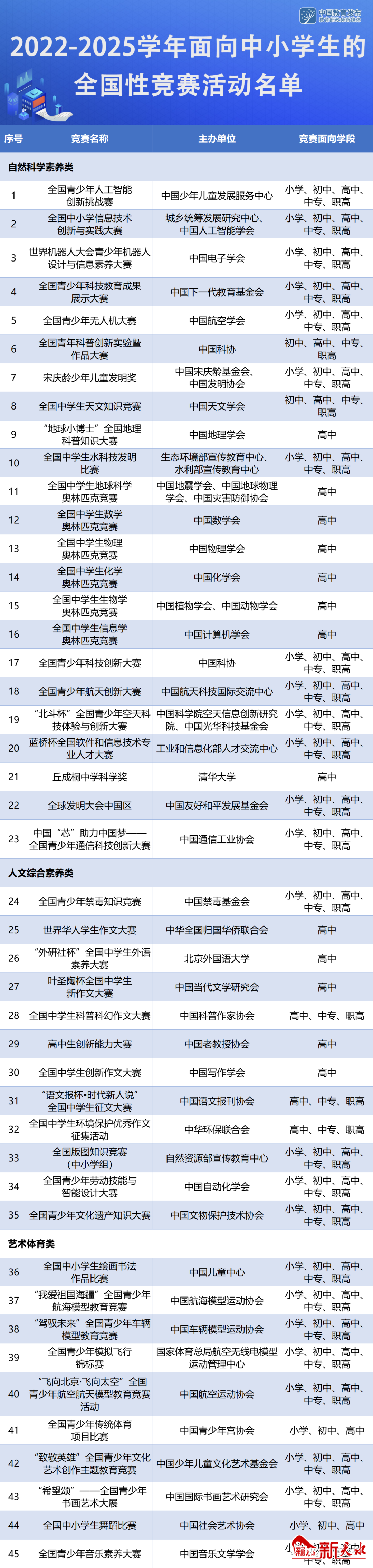 45项!教育部公示2022-2025学年面向中小学生的全国性竞赛活动名单