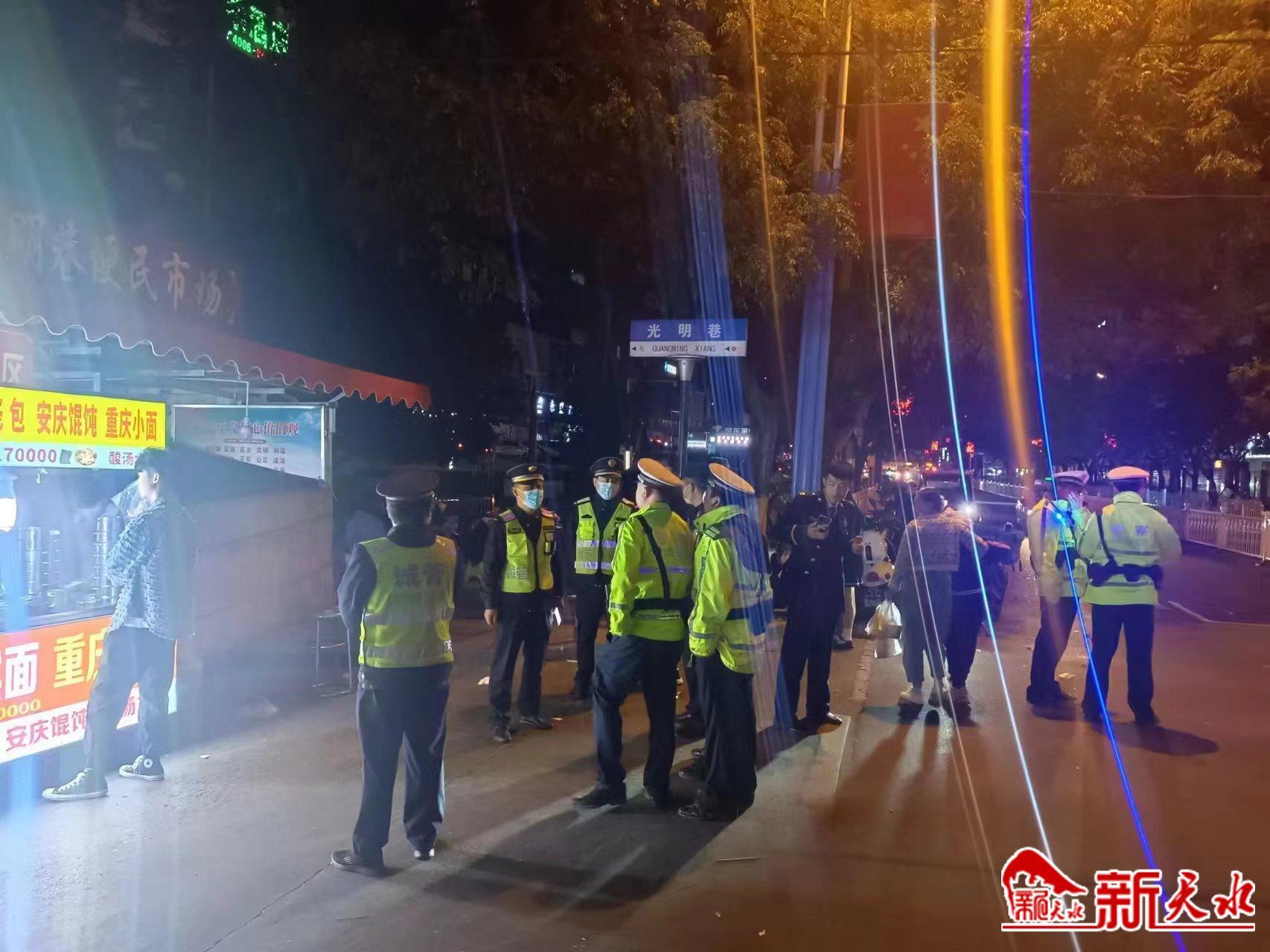 新天水讯 近日,为加强夜市摊点管理,维护夜间市容秩序,秦州区执法局与公安,交警等部门联合执法,对光明巷夜市摊点开展专项整治行动。