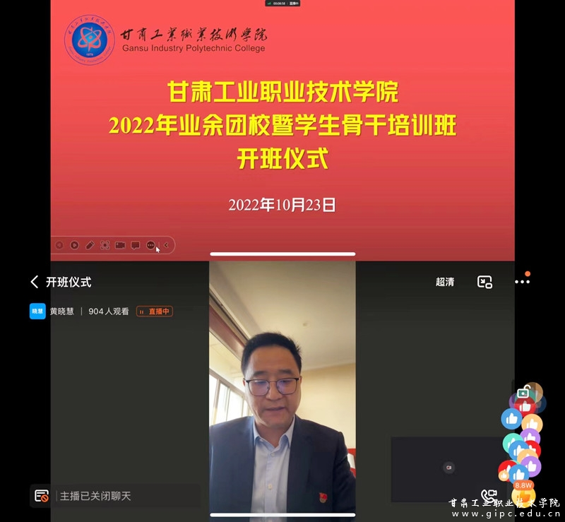 甘肃工业职业技术学院2022年业余团校暨学生干部培训班顺利开班