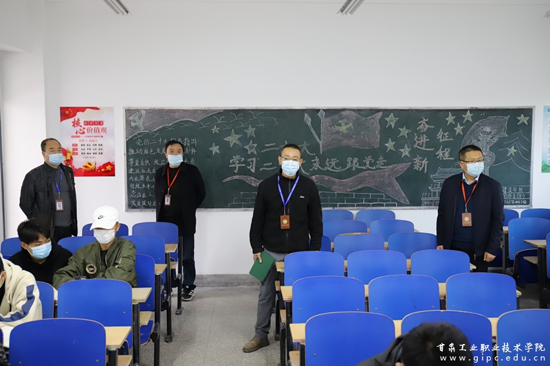 新天水讯 10月24日上午,甘肃工业职业技术学院党委副书记、院长安建平带队检查教学运行情况,副院长王利军,党政办公室、教务处等相关部门负责人陪同检查。