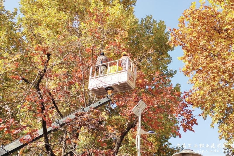 活动现场,火红的柿子挂满枝头,为确保安全高效,高空作业区采摘由专业采摘人员乘升降机进行作业,无危险区域组织学生志愿者参与本次采摘活动。