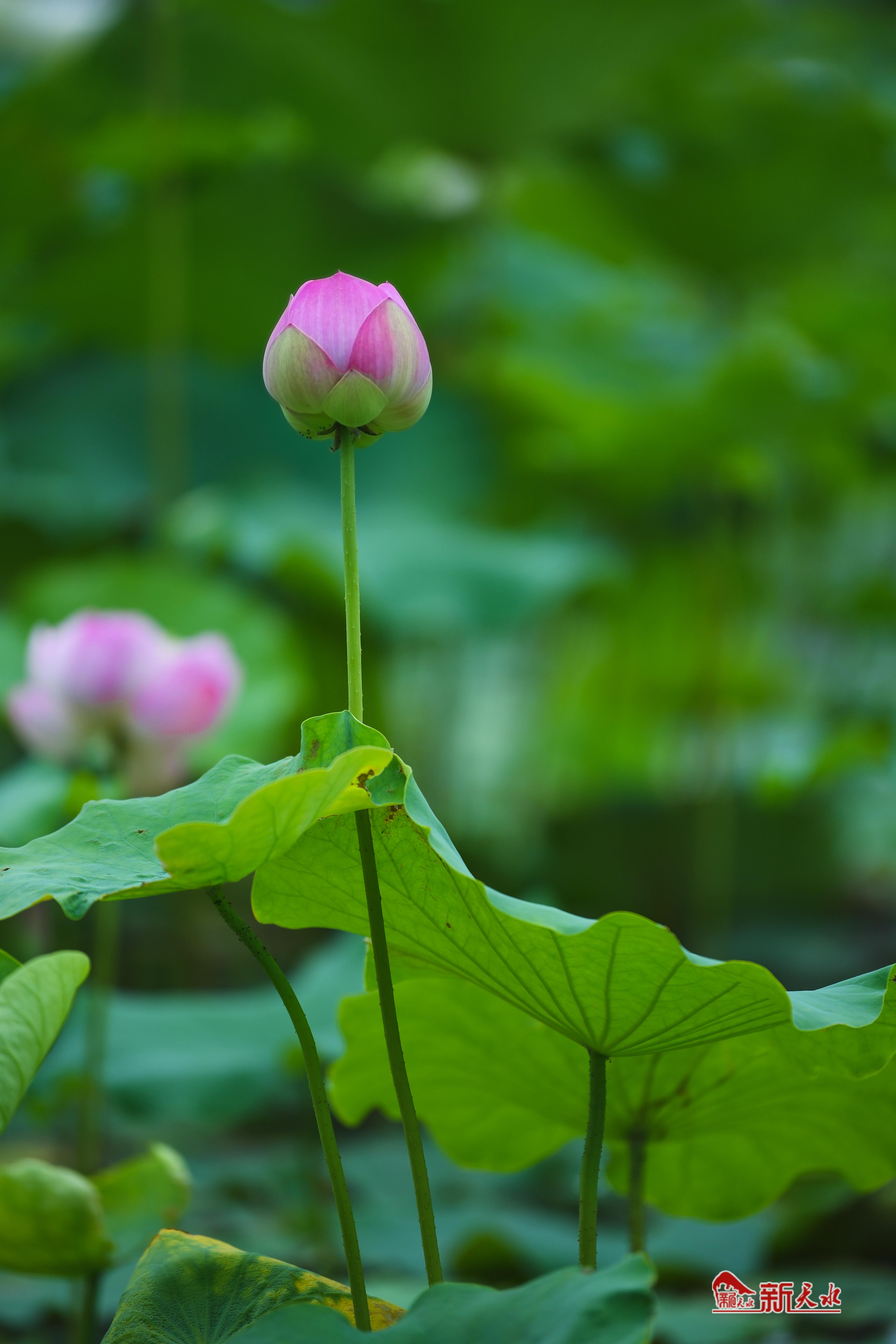 放眼望去,片片荷叶高低错落,朵朵红白相间的荷花或含苞待放、或竞相盛开,在阳光辉映下,显得格外娇艳。娇美灵动的荷花,也吸引了不少慕名而来的游客漫步其中,赏花拍照。