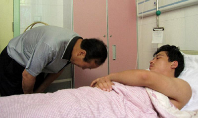 6月7日,延安市城管局局长张建朝走进延安大学附属医院刘国峰的病房,向刘国峰鞠躬道歉。刘国峰已经在此住院7天。这是张建朝在该事件发生后首次露面。 >>>详细
