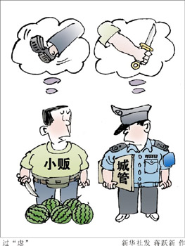 城管问题的出路,正应该结合目前我国的社会大背景。如果把就业、社保、贫富差距问题解决了,怎么会有那么多小贩呢?小贩少了,暴力执法也会少了,也就不会有老百姓跟你拼命了。如果只是纠结于城管问题本身,永远都不会找到答案。