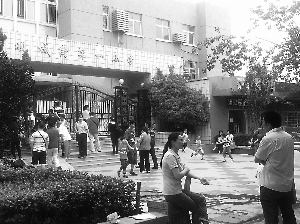 昨日,许多家长围在顺城街一小门口。张静雅/摄