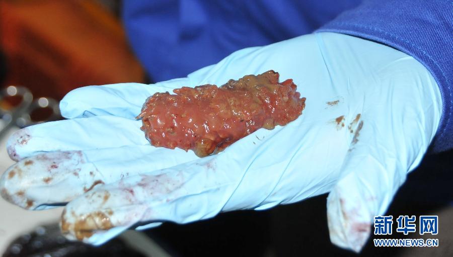 “蛟龙”号在南海海底采集到的红色海参(7月5日摄)。