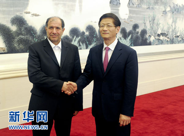 7月5日,中共中央政治局委员、中央政法委书记孟建柱在北京会见伊朗内政部部长纳贾尔。新华社记者 张铎 摄