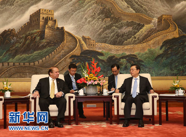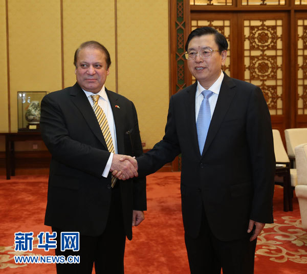 新华网北京7月5日电(记者刘东凯)全国人大常委会委员长张德江5日下午在人民大会堂会见了巴基斯坦总理谢里夫。