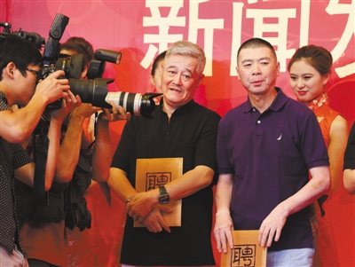 昨日,2014年央视春晚总导演冯小刚(右)、副总导演、语言节目总监赵本山在新闻发布会上。当日,中央电视台举行新闻发布会,宣布了2014年央视春晚创作团队阵容。冯小刚透露,2014年春晚八字方针为“真诚、温暖、振奋、好玩”。冯小刚为春晚定调,“要好玩,博人民一笑是标准;要真诚,创作者别自我阉割”。同时,他希望“负责审查的领导也能高抬贵手”。新京报记者 郭延冰 摄