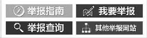 网站设置“举报指南”、“我要举报”、“举报查询”、“其他举报网站”四个可供点击的栏目
