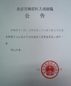 “京法网事”与海淀法院此次发布公告与以前不同的是,此次公告已经删去了“涉嫌”2字。
