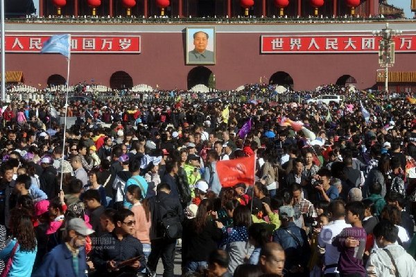 2013年10月2日,截至当日上午10:30,故宫迎来7万多游客。黄金周第二天,游客高峰如约而至。为缓解端门广场游客拥堵,故宫今天开放36个售票口,并加派安保加快安检速度。故宫内继续执行单向参观线路,虽然游客量大但秩序井然。法制晚报 刘畅
