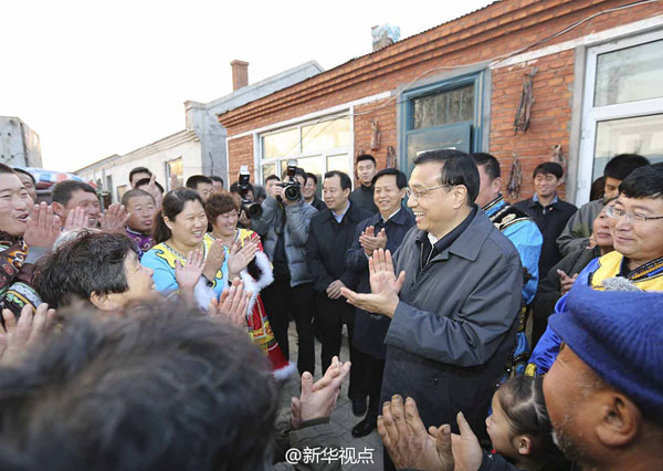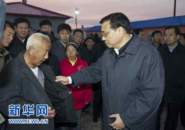 今夏,黑龙江部分地区遭受严重洪涝灾害,近9万户群众的房屋损毁或倒塌。眼下临近隆冬,灾区又地处严寒地带,正值过冬安置的关键时刻,受灾群众能不能安全温暖过冬,李克强十分牵挂。他来到受灾最严重的同江市八岔赫哲族村,踩着泥泞湿滑的道路,查看村民房屋状况和越冬准备情况。他对围拢来的群众说,你们这里洪灾发生后,党中央国务院高度重视,习近平总书记等中央领导同志作出批示,省委、省政府带领大家奋力抢险救灾,做了大量艰苦细致的工作,取得了抗洪救灾的胜利,没有因灾死亡一个人。他特别叮嘱当地干部,这里冬天冰天雪地,最低温度达零下40摄氏度,要把排查工作做细做深做到位,看群众房屋安不安全,保暖程度够不够,绝不能让一个群众受冻,使大家住得保暖、住得保险。暮色渐浓,李克强走进安置受灾五保户和特困户的银川乡幸福大院,看到新建的安置房里暖融融的,他十分高兴。他对周围的群众说,党和政府惦记你们的冷暖,我们一起努力共渡难关、重建家园。冬天过暖和了,来年一定有好春天、好日子。考察回到驻地,李克强又立即召开工作会,进一步部署做好群众越冬、灾后重建、水毁工程修复和今冬明春农业生产等工作。