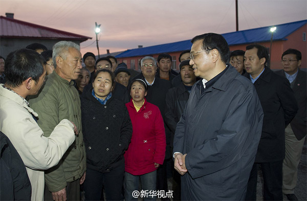 4日,在符合购买幸福大院住房条件公示栏下,李克强帮患病特困户邢方才查询,邢方才高兴地告诉总理自己榜上有名。幸福大院10月6日开工,建有8栋32户平房,已基本完工通暖,可让当地五保户和贫困户温暖过冬。 新华社记者 黄敬文 摄
