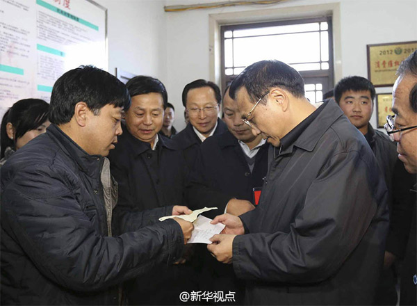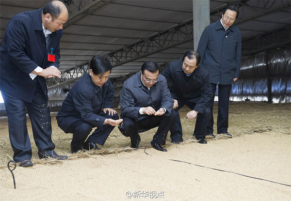 国务院总理李克强4日来到今夏曾遭受特大洪水袭击的黑龙江抚远县查看粮食收储情况。灾害对今年粮食收成影响怎么样?农民卖粮难不难?都牵动着总理的心。李克强来到抚远浓桥粮库详细了解情况。该粮库负责周边约2百万亩农田的粮食收储,今年已收水稻4万多吨。 新华社记者 丁林 摄