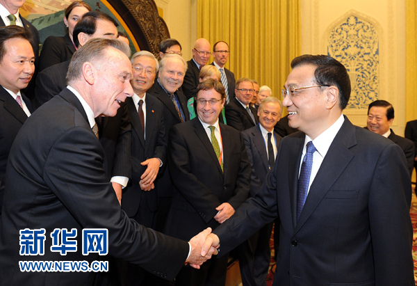 11月14日,中国国务院总理李克强在北京人民大会堂会见出席中国环境与发展国际合作委员会2013年年会的外方代表并座谈。新华社记者刘建生摄