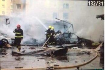 【有消息称一人双腿被炸飞】据春城晚报最新消息:爆炸来自前卫西路永丰商住城一个待拆迁的商铺里面。据对面的住户称,爆炸发生在二楼,波及到了一楼,发生爆炸的房间里面有很多煤气罐,在爆炸中一人轻伤,一人双腿被炸飞。一旁停靠的四五辆轿车被烧毁,同时街对面的住宅窗户全被震碎。