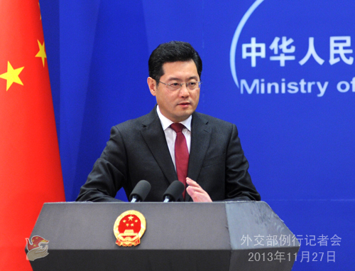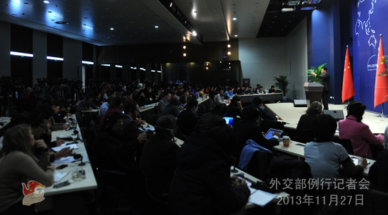 2013年11月27日,外交部发言人秦刚主持例行记者会。
