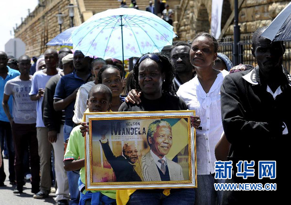 12月13日,在南非比勒陀利亚,人们排队等候进入联邦大厦瞻仰曼德拉遗容。 新华社记者李启华摄