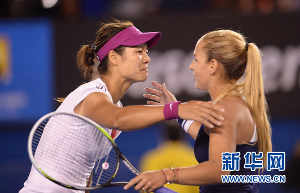 1月25日,中国选手李娜(左)在获胜后与斯洛伐克选手齐布尔科娃拥抱致意。当日,在墨尔本举行的2014年澳大利亚网球公开赛女单决赛中,中国选手李娜以2比0战胜斯洛伐克选手齐布尔科娃,夺得冠军。新华社记者李俊东摄
