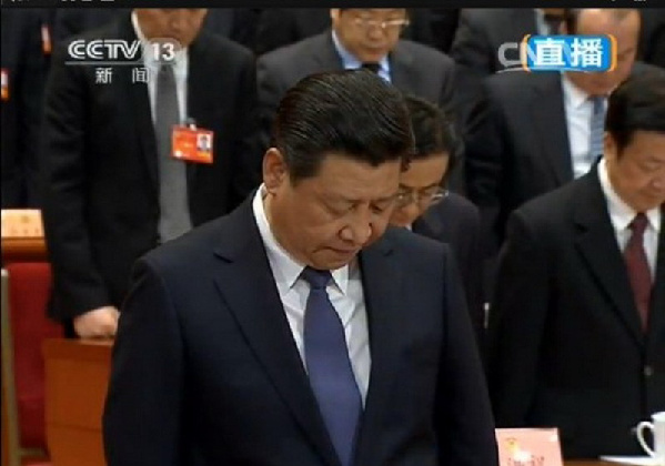 2014年3月3日,中国人民政治协商会议第十二届全国委员会第二次会议在北京人民大会堂开幕。习近平为在3月1日晚云南昆明火车站发生的严重暴力恐怖事件中遇难的群众默哀。
