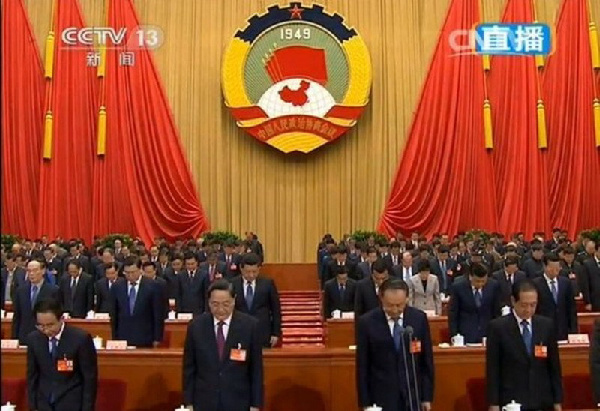 政协开幕会 委员全体起立默哀