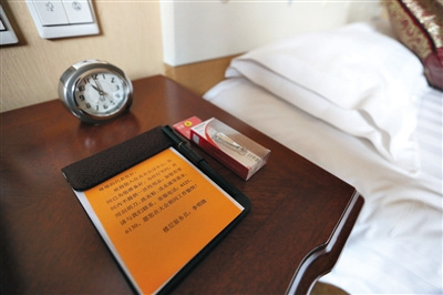 不仅没有一次性用品,床品也改成了5天一换。一名工作人员说,减少棉织品的清洗次数有助于节能减排,所以今年两会房间的床品都是隔5天才更换一次,“如果有提前更换的需求,需要特别向服务员告知”。
