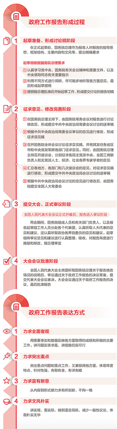 实际上,政府工作报告从起草,到提交人大会议审议,就是一个发扬民主、集中民智、反映民意、凝聚民心的过程。