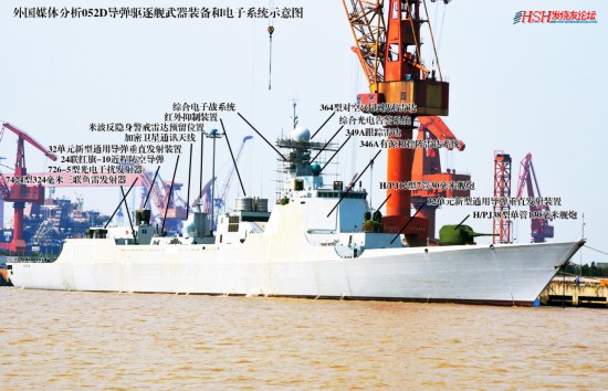 据外媒称,中国的新一代052D型导弹驱逐舰第三艘已下水,这是中国海军水面舰艇部队快速发展的一个缩影,052D是在052C型导弹驱逐舰基础上发展的一种新型多用途导弹驱逐舰,据称该舰装备有64单元新型导弹垂直发射系统、70倍口径130毫米新型单管隐身舰炮、新型综合指挥作战系统、新型红旗-9反导防空导弹系统、攻陆巡航导弹、新型远程反舰导弹和某新型主动相控阵雷达系统。整体综合性能和隐身能力得到了空前提高,舰载动力设备得到系统升级,现在让我们提前了解一下我们的新军舰。