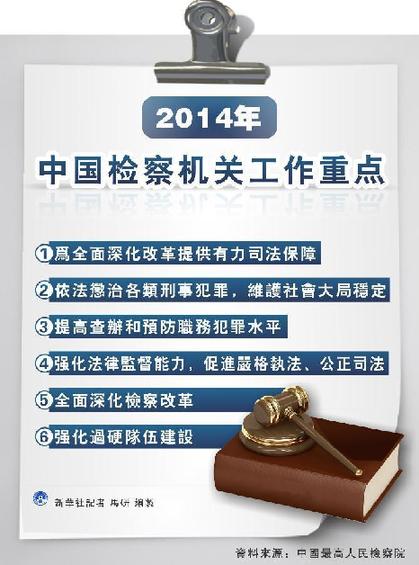 图表:2014年中国检察机关工作重点 新华社记者 马研 编制