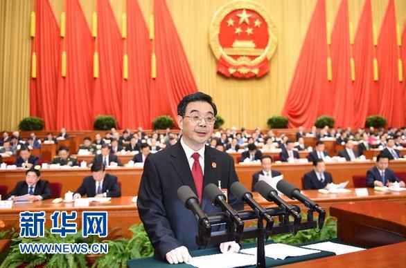 最高人民法院院长周强作最高人民法院工作报告。 新华社记者 李学仁摄