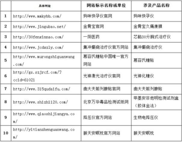 附:10家违法发布虚假医疗器械信息网站名单