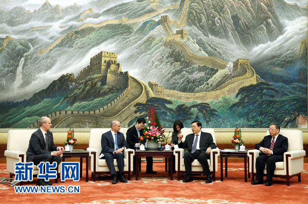 新华网北京3月17日电(记者熊争艳)全国人大常委会委员长张德江17日在人民大会堂会见由美国国会众议院“美中工作小组”共同主席波斯坦尼和拉森率领的代表团。