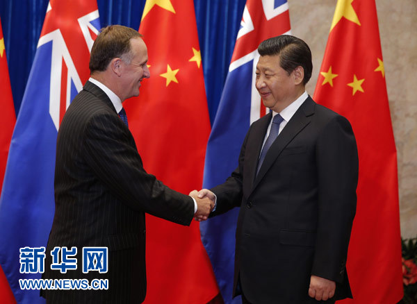 习近平指出,中新合作具有开创性和示范性。两国高层交往频密,双方都有加强了解与合作的真诚愿望,相互信任日益深化。新西兰经济独具优势,中国有广阔的市场,两国合作空间很大。双方要加强农牧业合作,同时拓展绿色经济、节能减排、高科技等领域合作,促进文化、教育、旅游交流。中方愿同新方共同努力,推动中新全面合作关系在相互尊重、互利共赢基础上再上新台阶。