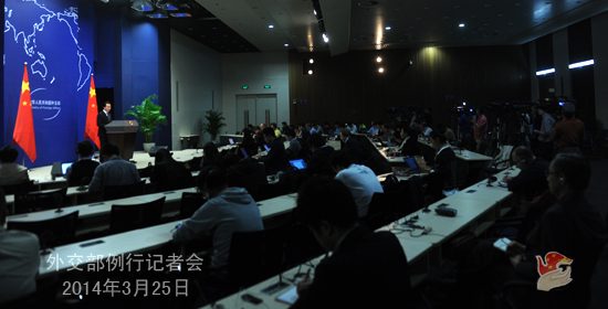 2014年3月25日,外交部发言人洪磊主持例行记者会。