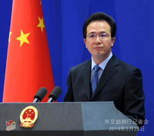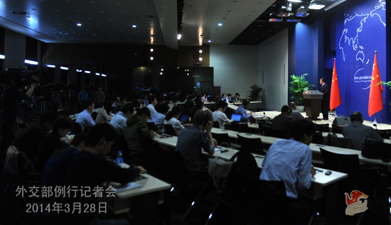 2014年3月28日,外交部发言人洪磊主持例行记者会。