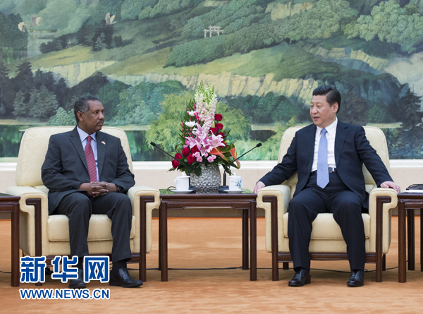 习近平说,半个多世纪以来,中国苏丹友谊历久弥坚,两国已成为平等相待、相互支持、合作共赢的好朋友、好兄弟、好伙伴。特别是近年来,两国各层次交往密切,政治互信牢固,在涉及彼此核心利益和重大关切问题上一直相互理解和支持,在能源、经贸、文化、卫生等领域的合作成果丰硕,给两国人民带来了实实在在的好处。中方始终从战略高度和长远角度看待两国关系,愿以两国建交55周年为契机,同苏丹携手努力,全面深化、积极开拓各领域友好合作,共同谱写两国关系新篇章。