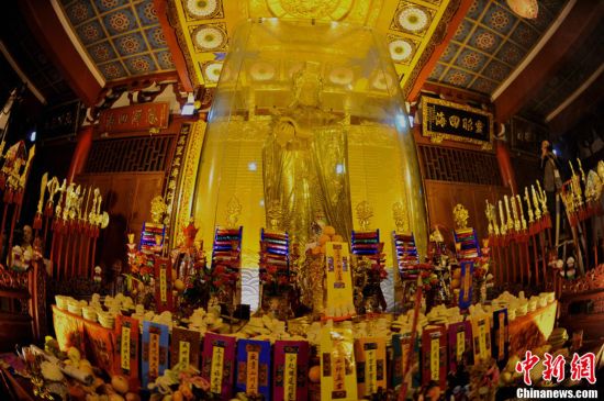 全球最大黄金妈祖金像开光 323公斤纯金打造