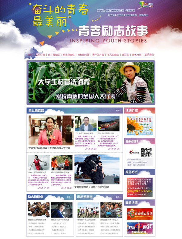 “奋斗的青春最美丽”青春励志故事活动主页。