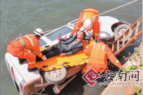 当天上午11时12分,昭阳区消防大队官兵到达现场,看见周围的群众站在3米高的河堤上观望,一辆面包车侧翻在冰冷的河水里,司机多处受伤,脸色苍白、瑟瑟发抖,十分惶恐地坐在车身上,伤者和车子在河里不停地晃悠,让人揪心。然而,遗憾的是,岸边站着二三十名群众,却没有一人想办法施救。