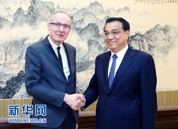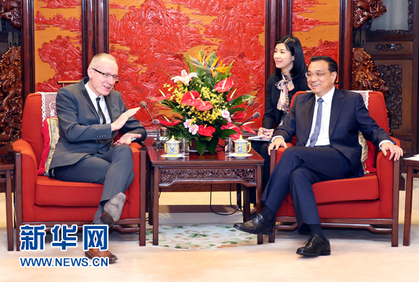 4月17日,国务院总理李克强在北京中南海紫光阁会见美国新闻集团总裁汤姆森(新华社记者 姚大伟 摄)